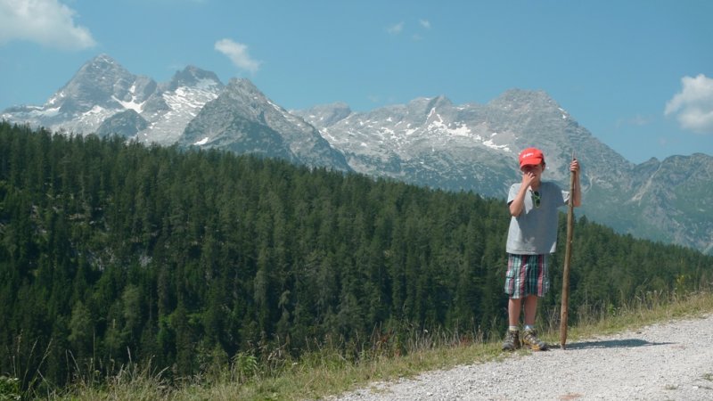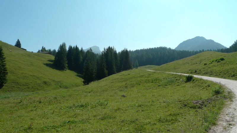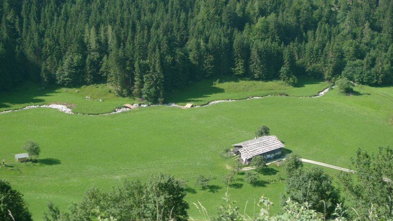 Pokud se chcete podívat na Kallbrunnalm z výšky, můžete na první odbočce zatočit doleva na cestu vedoucí směrem na Hochkranz a vystoupat přibližně 50 výškových metrů a pak sejít zpět dolů na cestu vedoucí od Kallbrunnalmu k informačnímu středisku. I tato odbočka vede po šotolinové cestě.