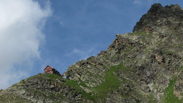 Za necelou hodinu od rozbočky dojdeme ke kamennému domku nedaleko cesty na malé náhorní plošině. A po dalších 15-ti minutách se zleva připojí stezka z Bielerhöhe. Ještě chvíli jdeme po cestě a potom nás značka zavede na stezku zkracující serpentiny štěrkové cesty. Po této stezce dojdeme po svahu a později i mezi většími kameny až na chatu, ležící ve výši 2538 metrů nad mořem.