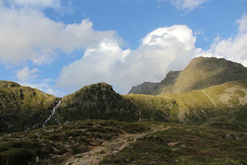 Výstup v krásné krajině podél Leibnitzbachu k Hochschoberhütte, který vede z lesa přes Leibnitzalm k chatě nad vodopádem.