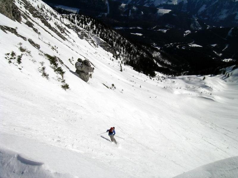 Vedle Eisgrube druhý velký sjezd kotlem na jižní straně Gölleru, přesto se jezdí zřídka. Je ideální v časném jaru, kdy je firn měkký jako máslo, ale také ve vysoké zimě, kdy mnohdy už panují příznivé poměry. Pro delší výstup se jedná o celodenní podnik. Co se týká krajiny – nádhera. Na začátku poklidný výstup přes Göllerhaus, potom neobvyklé překročení Kleine Göller s krásnými pohledy do Karlgrube a ke Göller. Tam je přirozeně maximální panoramatický výhled, potom ideální sjezd úžlabinou, která je úzká jen bezprostředně po vjezdu. Velká zábava ze sjezdu končí rychlým závěrem jízdy k výchozímu bodu. Co by mohl jeden chtít více?