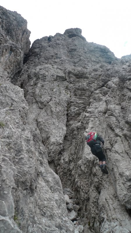 Zvláštnost: Pozor na uvolněné kameny. V horní části mohou být v zářezech až do začátku léta sněhová pole. (Lano pak může být eventuelně pod sněhem!)