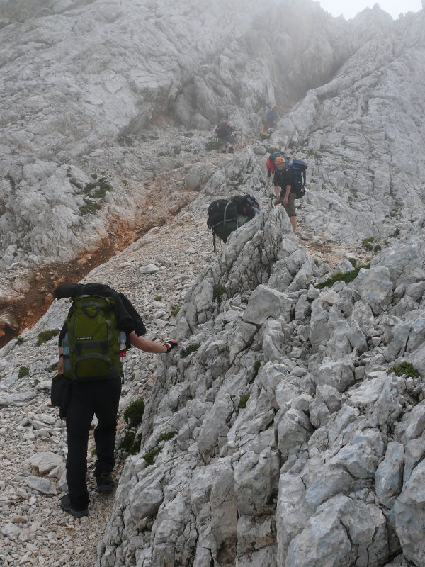 Ferratu lze absolvovat v rámci okruhu od Domu Valentina Staniča. Dom se nachází v nadmořské výšce 2 332 m a je východiskem turistických tras do 5 různých směrů. Vyjdeme směrem na jihovýchod po stezce přecházející nejprve pár sněhových polí, vystoupáme k rozcestí, z kterého se vydáme doleva. Cesta zde nejprve klesá do sedla Dovska vratca (2 254 m), aby vzápětí mohla opět začít stoupat. Strmé stoupání nás dovede k prvnímu jištěnému úseku, kde uvítáme ocelové lano a pár stupů ve skále. Směrem nazpátek se nám ukazuje nádherný výhled na hřeben Kredarice a nejvyší horu Julských Alp – Triglav. Vidíme krásně i Dom Valentina Staniča. Stezka dále pokračuje po hřebenu, který se mírně zužuje, jak se blížíme k vrcholu. Přelézáme zde jednotlivé vršky, které jsou občas jištěny řetězy. Zanedlouho již vidíme samotný vrchol, od kterého nás dělí už jen skalnatý hřebínek a poslední strmější stoupání. Zde se cesta napojuje na ferratu vedoucí z doliny Pekel (po naší levé ruce) na vrchol. Exponovaný hřebínek je zajištěn lany a kramlemi. Několikrát musíme vyšplhat po skále nahoru a potom zase slézt dolů. Za jedním z těchto skalních výběžků se skrývá nenápadně sestup doleva do doliny Pekel.